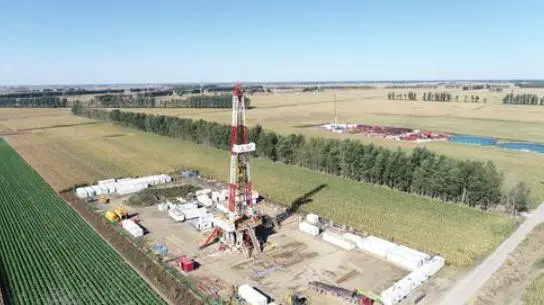 今年以来,东北油气分公司加快井位部署,优化生产组织,创新“小井眼”工艺应用,钻井提速提效明显。截至目前,累计钻井进尺量突破20万米,较2023年全年进尺量增长20%。图为位于吉林省四平市梨树县的金山气田钻井现场。 |